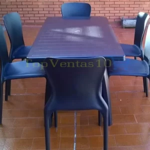 Mesa Rectangular Reforzada Negra Con Alma de Acero + 6 Sllones Super Reforzados Negros Modelo Perfecto.