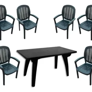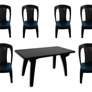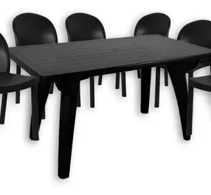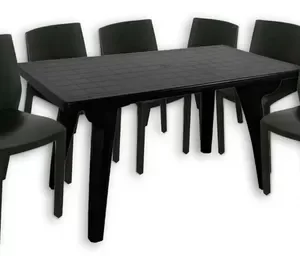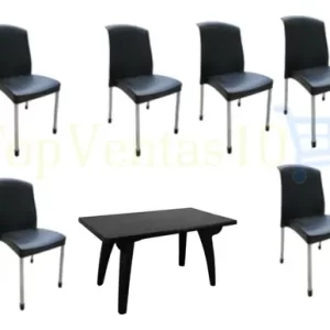 MESA RECTANGULAR REFORZADA NEGRA + 6 SILLONES REFORZADOS NEGROS MODELO CARIBE.