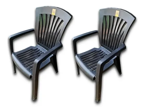 -CARACTERSITICAS DE LOS SILLONES: Fabricados en resina sintetica de alta densidad e impacto, super reforzados, soportan hasta 150 kg, perfectamente apialbes, muy cofortables por la altura de su respaldo y poseen canaletas en su asiento que permiten que el agua de lluvia no se deposite en el mismo.