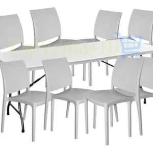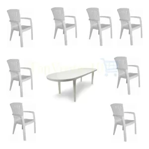 -CARACTERISTICAS DE LA MESA: Fabricada en resina sintetica de alta densidad e impacto, super reforzada, cuenta con 10 tornillos por cada pata quie le dan firmeza y robustez Lleva 2 regatones de goma en cada pata para evitar su deslizamiento. Posee agujero para sombrilla y dispositivo fijador para la misma.