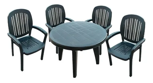 -CARACTERISTICAS DE LA MESA: Fabricada en resina sintetica de alta densidad e impacto, muy reforzada, firme y estable, posee 4 tornillos phillips por cada pata, ademas de contar con un taco de goma en cada una de las mismas. Viene con agujero para sombrilla y dispositivo fijador para la misma.