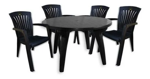 Mesa Redonda Reforzada Negra de 120 cm. de Diametro + 4 Sillones Super Reforzados Modelo Kansas.