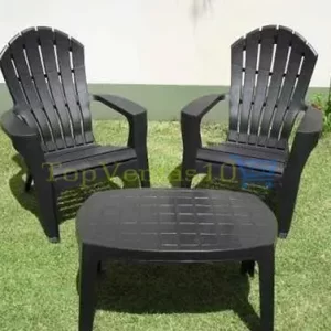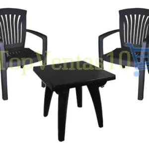 «Mesa Cuadrada Reforzada Negra de 75 x 75 cm.+ 2 Sillones Super Reforzados Negros Modelo Kansas.